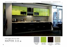 Специально для поклонников ультрасовременных интерьеров создан кухонный гарнитур «Хайтек». Мебель наделена всеми характеристиками этого стиля: стремительными линиями, монохромными цветами, глянцевыми поверхностями, минималисткой фурнитурой. Декоративные элементы не используются. Благодаря этим особенностям дизайна комплект не загромождает пространство.