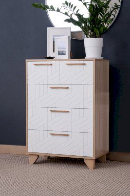 Комод Амстердам — вместительный и функциональный элемент как для спальни, так и гостиной. Модель оснащена тремя большими ящиками для хранения предметов одежды, текстиля и двумя маленькими — для личных вещей, документов, аксессуаров. Конструкцией предусмотрены шариковые направляющие полного выдвижения.