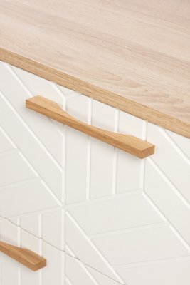 Комод оборудован деревянными ручками из массива дуба. Регулируемые опоры, выполненные из массива сосны, позволяют нивелировать неровности напольного покрытия.