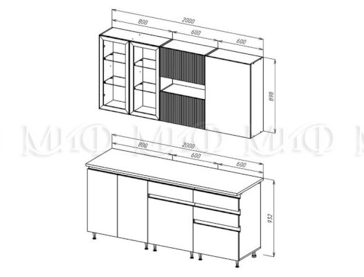 Высота верхних шкафов, мм | 898 |