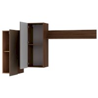 Гостиный модуль "Эмилия" ГМ-12 включает в себя ассиметричные шкафчики и длинную стильную рейку, что придает дизайну коллекции индивидуальность. В шкафчиках находится по две вместительных полки, а между ними расположены открытые узкие полки, которые идеально подойдут для хранения сувениров и элементов декора.