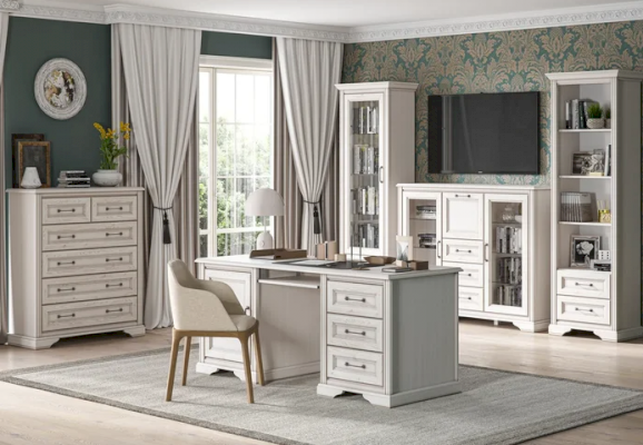 Коллекция мебели STYLIUS выполнена в лучших традициях классического стиля: декоративные карнизы, изящные ручки,