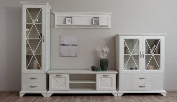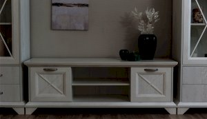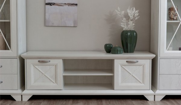 Тумба Лорена – функциональный элемент гостиной в стиле неоклассика, оснащена всем необходимым для удобства использования. Два открытых отделения и полки за закрытыми фасадами помогут разместить документы, медиа технику, пульты и другие необходимые вещи. Выполнена из экологичных материалов.