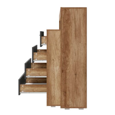 Комод многофункциональный Прима КМ-17 - удобная система хранения для одежды, постельных принадлежностей или других хозяйственных аксессуаров. Все необходимые вещи можно расположить на полках за распашной створкой, а также в трёх вместительных выдвижных ящиках на роликовых направляющих, которые обеспечивают легкую и бесшумную эксплуатацию модели.