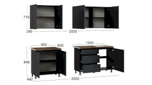 Глубина верхних/нижних модулей: 296/442 мм