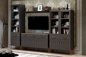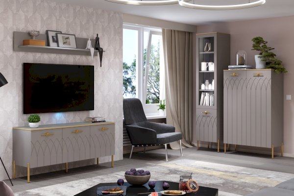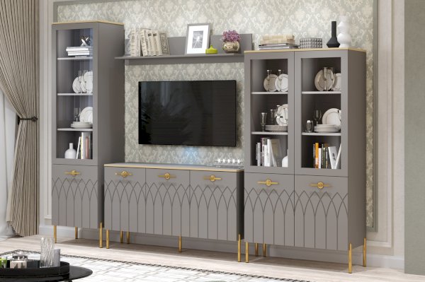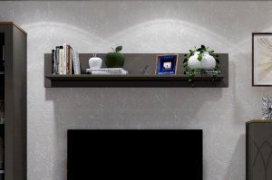 Интерьер современной гостиной должен быть не только красивым, но и функциональным. Для открытого хранения и расстановки предметов декора вы можете купить настенную навесную полку. Полка в мягком сером цвете мокко прекрасно впишется в интерьер в современном стиле.