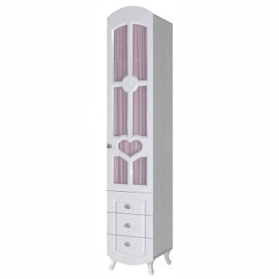 Декоративные приемы: Фрезеровка на фасадах. Ультрафиолетовая фотопечать. Занавески входят в комплект, крепятся на липы к стеклу. Ткань Interio (цвет «розовый», тип ткани «вуаль»).